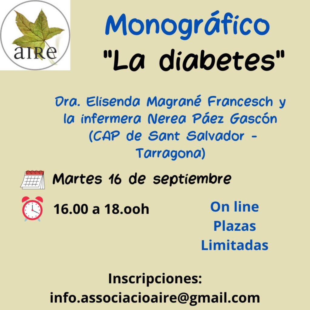 Se acaban las vacaciones y volvemos con las actividades. MONOGRÁFICO"LA DIABETES" Martes 16 de septiembre 16'00 a 18'00h...